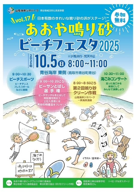 主催 | あおや鳴り砂ビーチフェスタ実行委員会、青谷地域づくり連絡協議会、青谷観光協会 |
