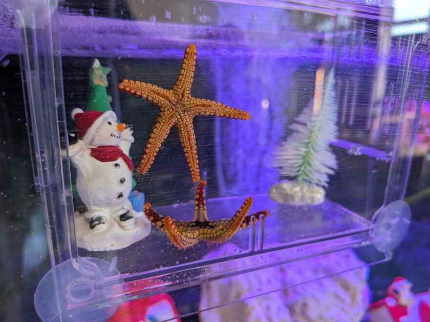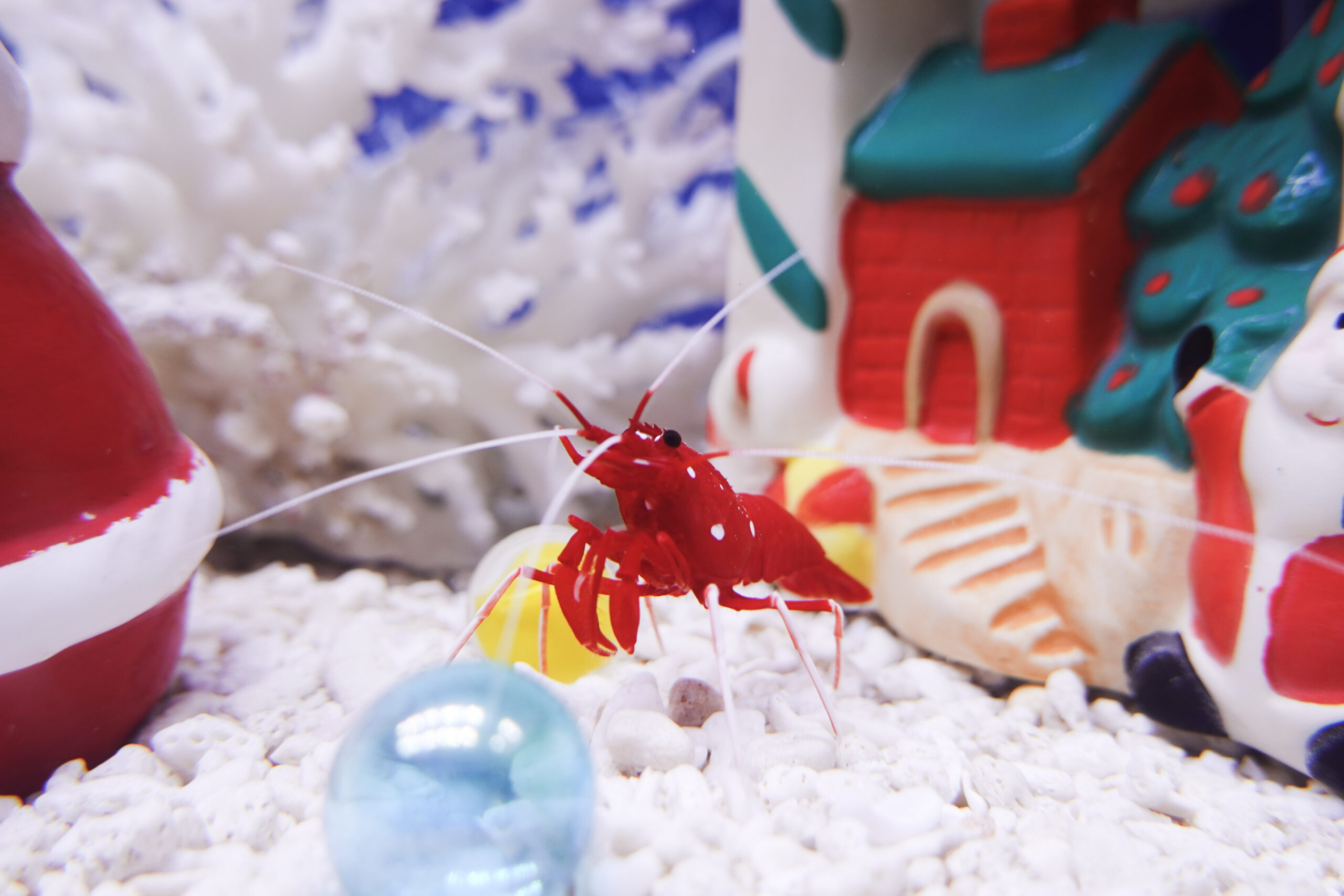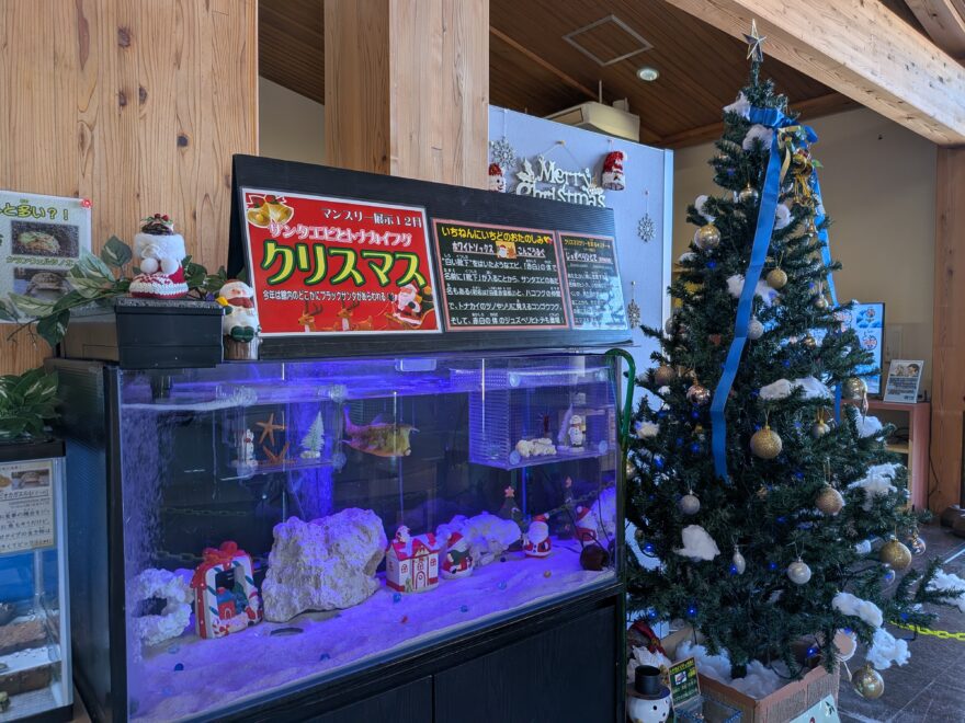 魚だけでなく、水槽や周りの雰囲気にもクリスマスにちなんだ