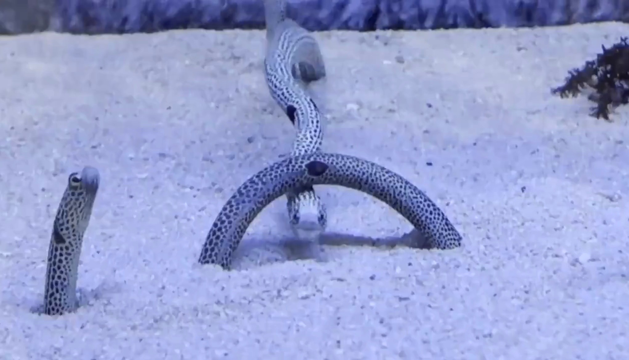 すると、それを見つけたチンアナゴがくぐろうとする姿が、バズり中です。